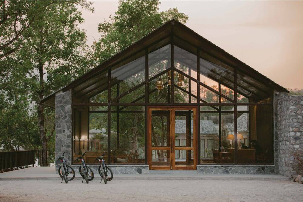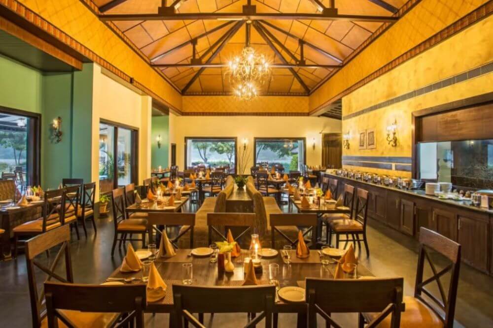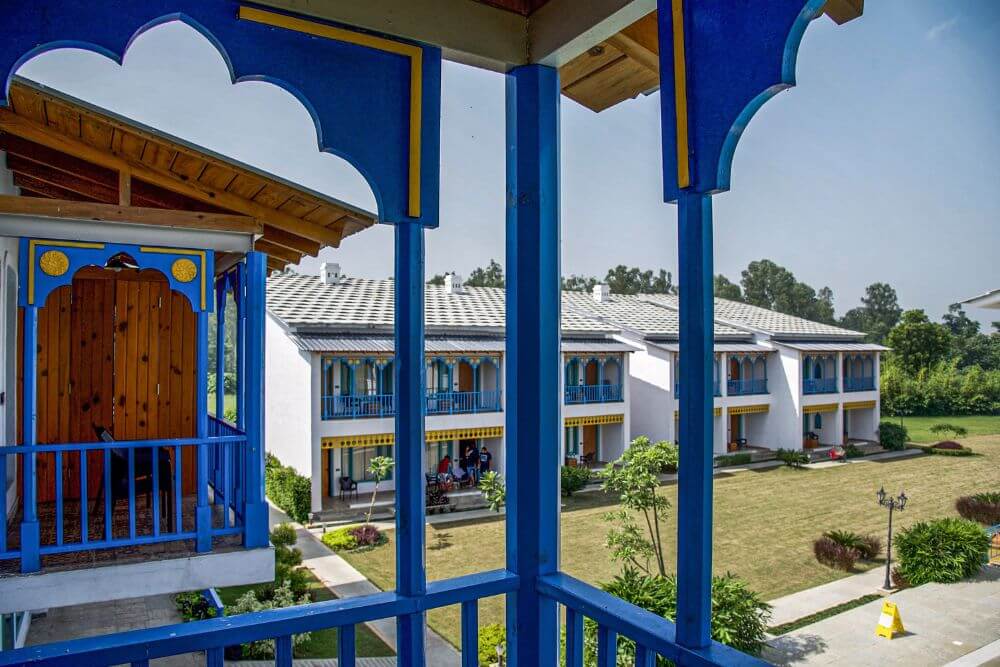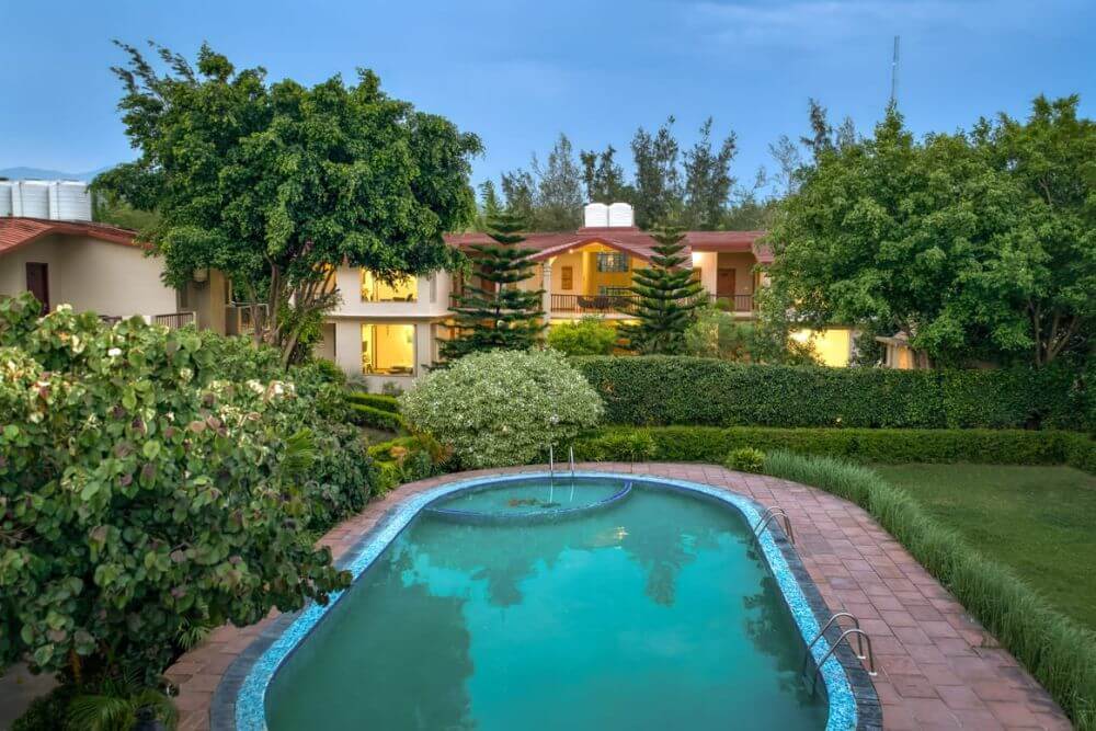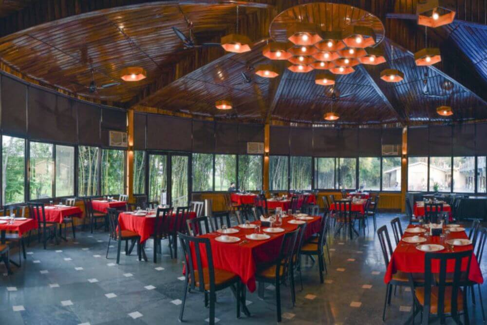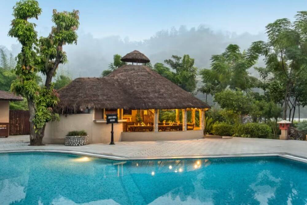 Set atop a hill, the resort property offers a birds’ eye view of the picturesque valley below. Relax as you stay at this premium resort, which utilizes renewable solar power to meet its energy demands of approximately 60%. Enjoy local Kumaoni cuisine, fortified with local millets and greens, prepared skilfully to prepare a gourmet, nourishing spread. Lounge at one of the best resorts near the Jim Corbett Park