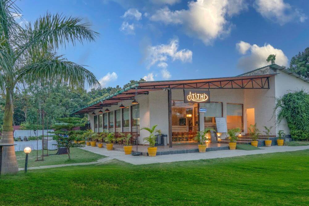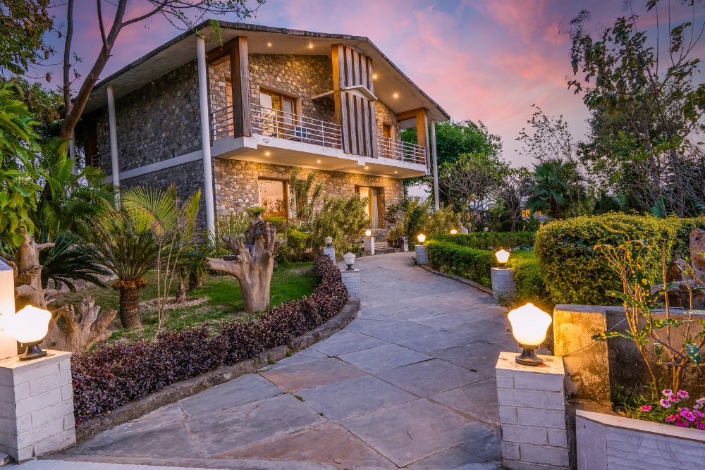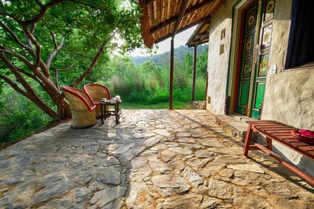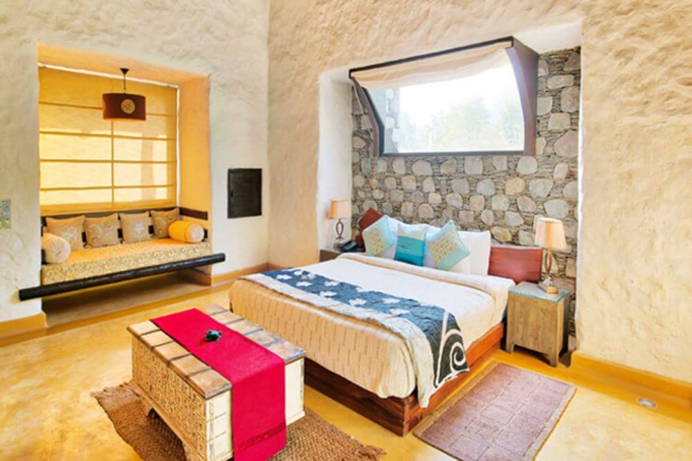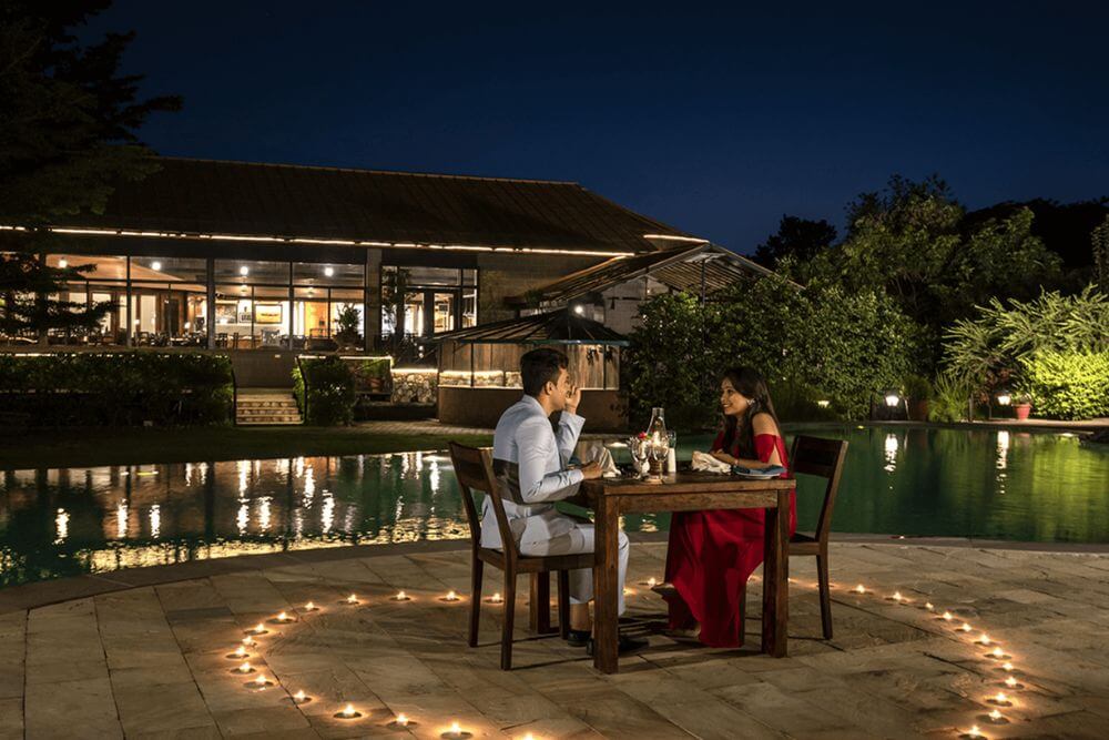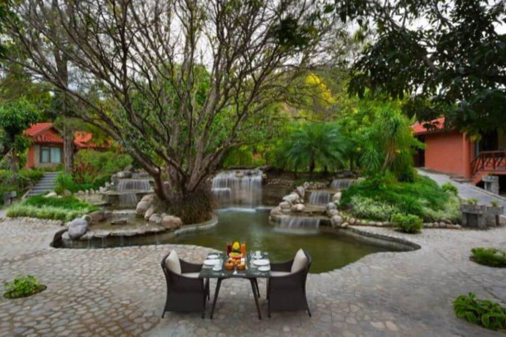 Set atop a hill, the resort property offers a birds’ eye view of the picturesque valley below. Relax as you stay at this premium resort, which utilizes renewable solar power to meet its energy demands of approximately 60%. Enjoy local Kumaoni cuisine, fortified with local millets and greens, prepared skilfully to prepare a gourmet, nourishing spread. Lounge at one of the best resorts near the Jim Corbett Park