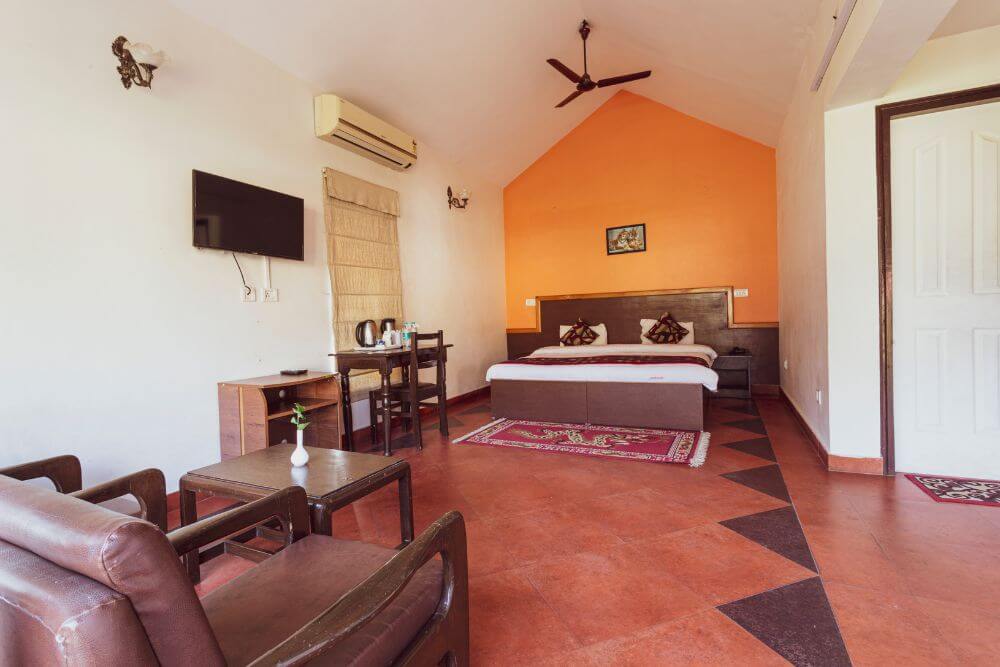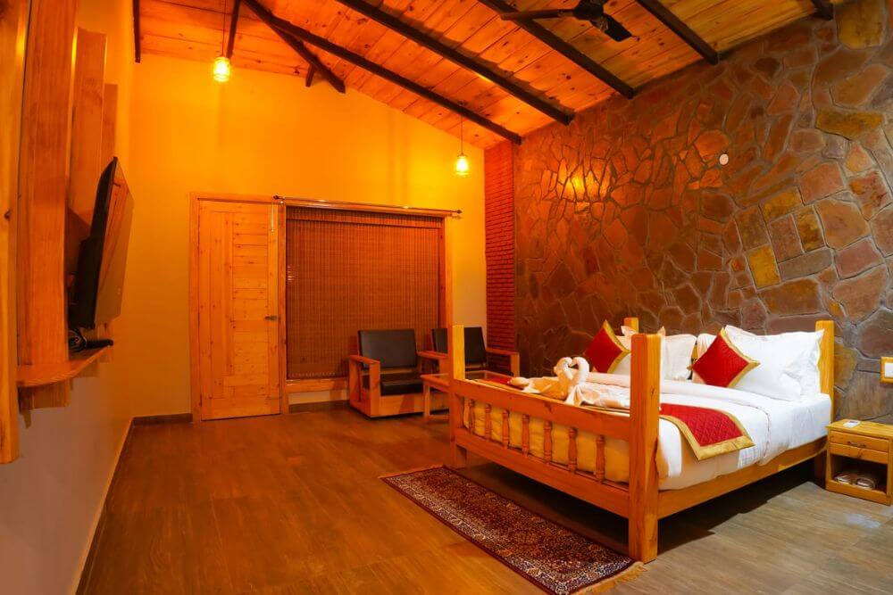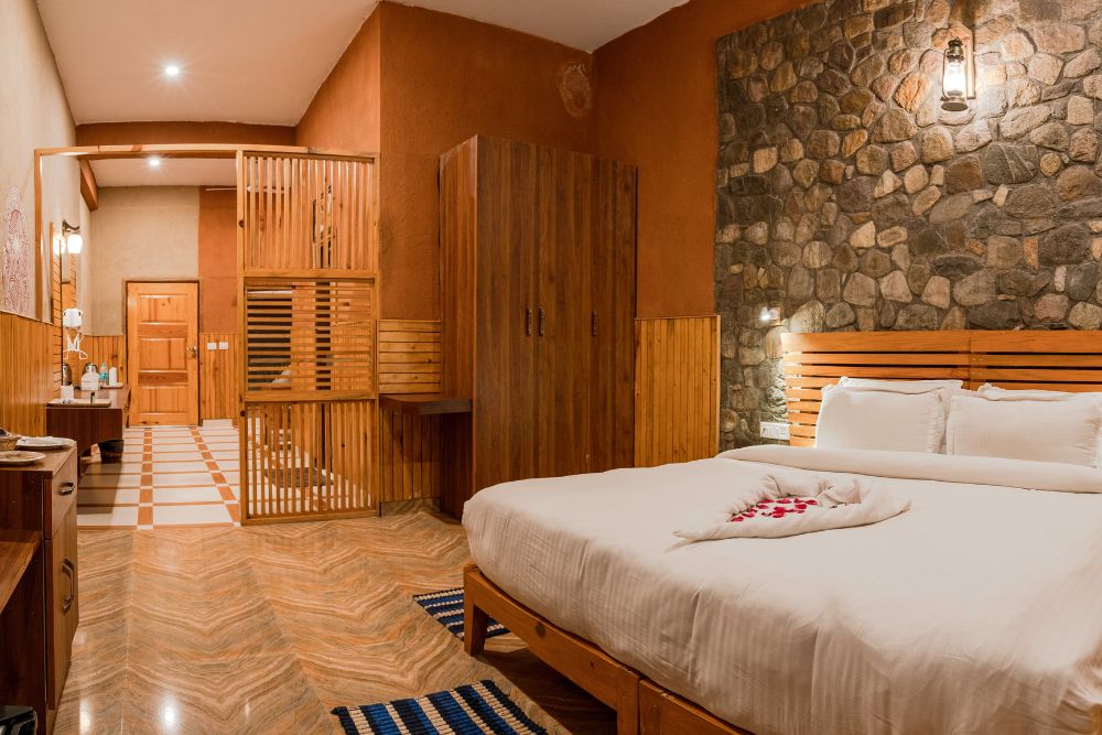 jüSTa Lazy Haven Corbett is one of the finest hotels in Corbett, Ramnagar. Our focus is on providing exceptional hospitality and comfort, with 24 premium rooms designed for luxurious retreats in the lush jungles of Corbett. Guests can choose between Superior and Deluxe rooms, each offering a truly indulgent stay. In addition to modern amenities, our rooms feature a unique rustic mud wall design that perfectly blends contemporary and traditional elements. Nestled in the midst of greenery, every