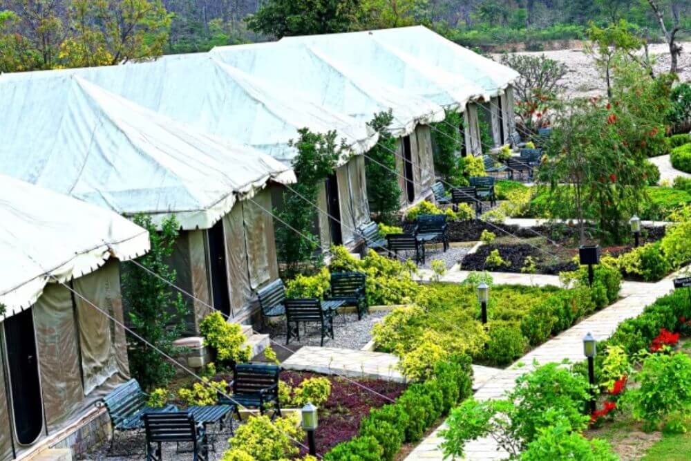 The Tiger Camp Resort is set in a picturesque landscape between the reserved jungles of Jim Corbett National Park and the River Kosi. The resort offers stunning views of nature and the renowned wilderness of Kumaon. At Tiger Camp Resort in Corbett, we bring together a delightful package of fun-filled pastimes, thrilling adventure activities, and serene relaxation amidst nature’s embrace.